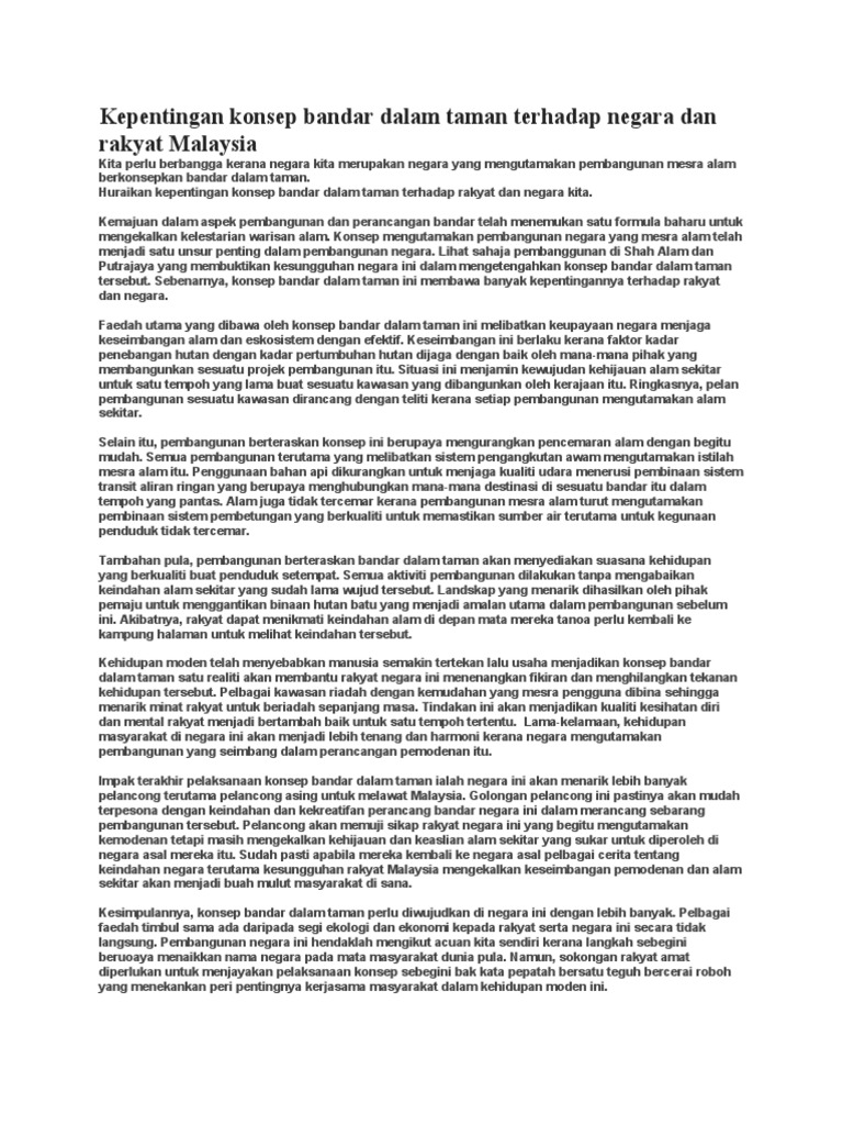 Contoh Karangan Bandar Dalam Taman